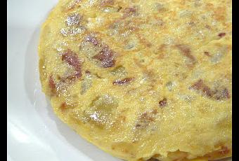 - Cogemos una sartén de 22cm. y la ponemos a calentar con un hilillo del aceite en el que hemos frito las patatas (lo mínimo para que quede ligeramente engrasada). Cuando esté caliente echamos las patatas mezcladas con el huevo. La dejamos un par de minutos y con una espátula vamos dando forma a los bordes. Le damos la vuelta y la dejamos 2 minutos más. Apagamos el fuego y la dejamos en la sartén otro minuto en el que se acabará de hacer. Aquí cada uno hará su aportación personal, porque como digo, a algunos le gustan muy hechas, a otros al punto...
