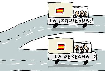 La división de España en derechas e izquierdas es una falsedad, la gran mentira que los partidos políticos utilizan para dividir el país en dos bandos, para implicar a los ciudadanos en la batalla por el poder y para conseguir votos y privilegios.