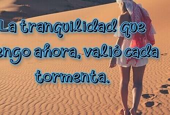 Aquí les dejo la frase bonita de esta semana. Seria maravilloso sentirnos así después de pasar por momentos duros y tristes en nuestra vida. Recuerden al final siempre nos encontramos con esa luz que nos cambia todo. La tranquilidad que tengo ahora, valió cada tormenta.