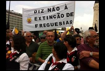 El gobierno portugués puso hace meses sobre la mesa una ley que pretende eliminar las freguesias, el equivalente luso a nuestras parroquias rurales y concejos, que dió lugar a un movimiento cívico en defensa de las mismas agrupado en la Plataforma Nacional contra a extinção de freguesias. Los argumentos esgrimidos por el gobierno portugués fueron exactamente los mismos que los empleados por el de Mariano Rajoy: que las entidades locales son ineficientes, que se pretende ahorrar costes, que se busca reorganizar para dar mejor servicio.