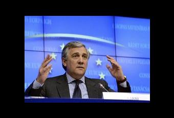 El comisario europeo de Industria, Antonio Tajani, en una rueda de prensa en Bruselas, el 19 de febrero de 2013(©AFP/Archivo)
