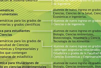 – ‘Matemáticas para los grados de ingenierías y grados científicos’. Para alumnos de nuevo ingreso en grados de Ciencias o de Ingeniería.