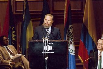 En la Cumbre de los Jefes de Gobierno de los Estados miembros de la Asociación de Estados del Caribe sobre Comercio, Turismo y Transporte, en Trinidad y Tobago, el 17 de agosto de 1995. Estudios Revolución/ Sitio Fidel Soldado de las Ideas.