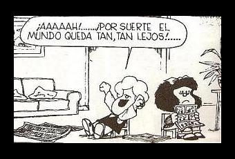 Mientras Mafalda comentaba la noticias del día, Susanita, con una sonrisa de alivio, se desperezaba y decía: “por suerte el mundo queda tan, tan lejos”. Susanita viviendo en las nubes de la ignorancia voluntaria. Mafalda, consciente de que el mundo es un pañuelo donde los gringos se soplan los mocos.