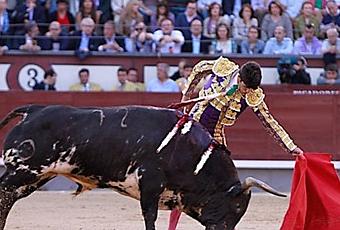 El toreo bueno, el de verdad, es el que da las ventajas al toro. Manzanares baja mucho la mano es cierto, lo que hace, hasta lo que no está bien, está lleno de estética, empaque, gracia. Anda mucho a los toros con donosura y, además, todo eso lo vende muy bien. Pero su toreo es lineal porque descarga la suerte retrasando excesivamente la pierna de salida, y así físicamente es imposible hacer el toreo circular, el bueno, el de fuera a adentro, ni torear pasándose cerca al toro. Mucho cite fuera de cacho, con la muleta muy oblicua y toreando al hilo del pitón. Y eso, perdónenme no es torear, es destorear. Y ese defecto lo acusa principalmente al natural. Sin embargo hubo una serie en la que sí hubo naturales buenos, ajustados, templados, exponiendo. También es cierto que los cambios de mano y los pases de pecho en él adquieren una gran belleza y plasticidad. Todo ello quiere decir que es capaz de torear y, con las cualidades que atesora, es de esperar que siga evolucionando en este sentido. Por cierto, con el capote, como se dice ahora, progresa adecuadamente. Toreó muy bien por delantales, templados y ajustados. Suerte que inventó Joselito "El Gallo" proveniente del clásico pasarse al toro por el pecho. En lo que es un maestro Manzanares es con la espada. Un magnífico estoqueador, perfilándose de lejos, donde es más factible pinchar, y con su peculiar forma de coger el estoque. Sin embargo la estocada al quinto, de impecable ejecución, quedó caída. Oreja de poco peso, otra más, en esta feria que ha tomado el sendero del hogaño triunfalismo y la falta de exigencia de antaño. A destacar la magnífica cuadrilla de Manzanares, sin duda la mejor del momento.