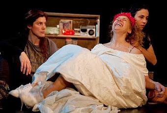 Brillante y audaz la actuación de las tres refugiadas: Sandra Almendros, Leticia Pascual y Ángela Villar bajo la dirección de María García de Oteyza en la sala Nueve Norte .