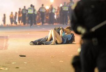 De aquella oleada de vandalismo quedó para el recuerdo aquella foto de una pareja besándose en el suelo:
