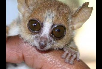 Por otra parte, tenemos que recoger el máximo número posible de rayos de luz. Como hay muy poca, nos interesa que sean ojos grandes. Así, los animales nocturnos tienen los ojos proporcionalmente más grandes con relación al tamaño del cráneo. Un ejemplo de ojos proporcionalmente grandes: este pequeño primate llamado lemur: