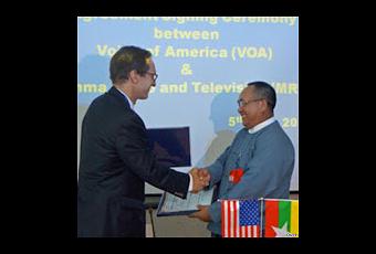 El director de la VOA Ensor David visita Birmania y firma acuerdos con las autoridades de la radio y televisión estatal de esa nación asiática.Programas de enseñanza de Inglés de la Voz de los Estados Unidos de América saldrán pronto al aire en la radio estatal birmana bajo los términos de un acuerdo alcanzado este martes en la capital, Naypyitaw.