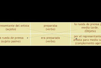 En la voz pasivase pone énfasis en el objeto de la acción que además va introducido por lapreposición por:La rueda de prensa era preparada por elrepresentante del artista para media tarde.