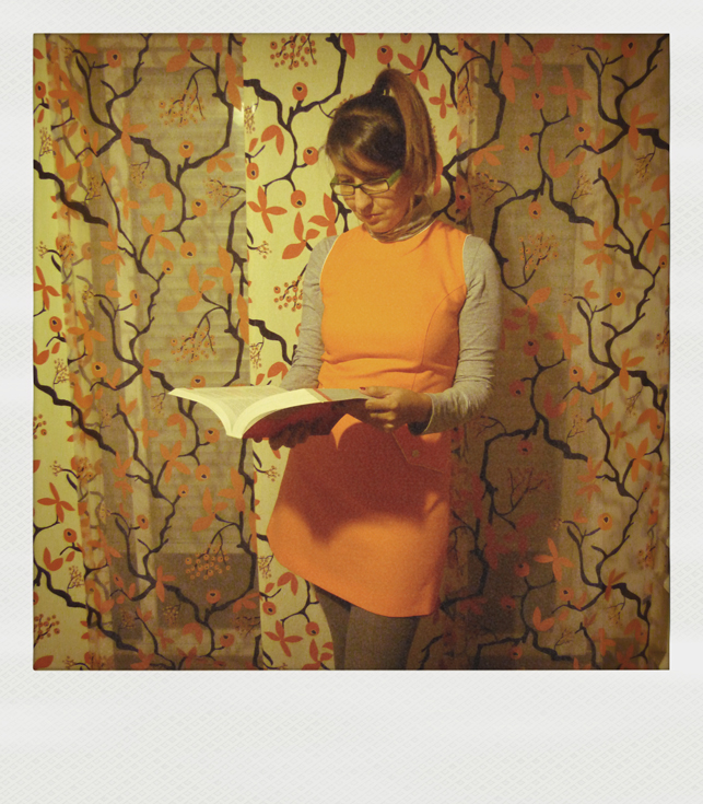 El vestido naranja tiene reminiscencias años 60's. El corte evasé con caída acampanada, sin mangas y de color llamativo, eran las premisas de aquellos años. Esta prenda en concreto, es de de Humana Vallecas adquirida por el módico precio de 9€. Además, esta cadena de la Fundación Pueblo para Pueblo, ha abierto una nueva tienda en Madrid.