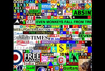 Creando bloques de 10x10 píxeles, colocó imágenes publicitarias (logos) con enlaces a las compañías y un mensaje que se despliega al pasar el curso sobre cada logo.