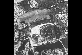 Camiones alemanes avanzan penosamente por carreteras enfangadas.Camaradas,