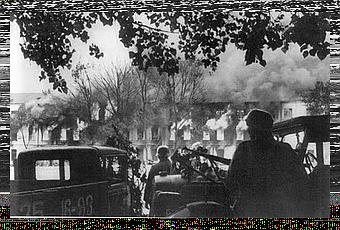 Soldados alemanes en las calles de Smolensko, una ciudad en llamas.Camaradas,