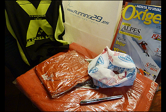 La bolsa del corredor muy correcta: camiseta técnica, gran toalla publicitaria, buff, barrita energética, un par de revistas de temática runner y aventura y la publicidad típica del resto de patrocinadores.La salida se da de forma puntual y unos 70 corredores comenzamos a encarar los primeros metros de ascensión de la prueba con ritmo alegre, aunque por mi parte controlando para no quemarme demasiado pronto.