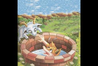 Llegó mástarde al mismo pozo un chivo sediento, y viendo a la zorra le preguntó si elagua era buena. Ella, ocultando su verdadero problema, se deshizo en elogiospara el agua, afirmando que era excelente, e invitó al chivo a descender yprobarla donde ella estaba. Sin más pensarlo saltó el chivo al pozo, y despuésde saciar su sed, le preguntó a la zorra cómo harían para salir allí.Dijoentonces la zorra: “Hay un modo, que sin duda es nuestra mutua salvación. Apoyatus patas delanteras contra la pared y alza bien arriba tus cuernos; luego yosubiré por tu cuerpo y una vez afuera, tiraré de ti”.