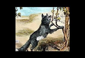 El escritor griego clásico, Esopo, consiguió la universalidad gracias a las fábulas que tomó de la tradición oral y que por esta misma vía de transmisión se extendieron por Europa. En La zorra y las uvas Esopo se burla y reprende a esa gente que cuando no consigue una cosa se consuela estúpidamente diciéndose que no le interesa. Así una zorra que tenía hambre vio un racimo de uvas e intentó atraparlo para comérselo, pero como estaba demasiado alto y no podía, se alejó diciendo: "No importa, están verdes". La moraleja de esta fábula viene a decir que a menudo se desdeñan las cosas cuando están fuera de nuestro alcance. Esta ilustración es de 1879.
