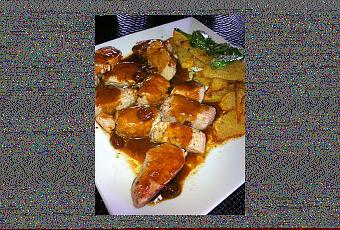 Nosotros fuimos y nos dejamos sorprender por ellos. Decisión a posteriori acertada. Nos prepararon un menú que maridaba a la perfección con sus vinos, o lo contrario, que sería lo mismo. Empezamos con un ajeno, un verdejo Erre de Herrero de 2011 para acompañar los aperitivos de la casa y una ensalada de tomate, con queso tierno y anchoas, todo bien regado con un aceite de la zona. El vino era de Rueda pues ellos solo hacen tintos. Con el primer vino de la casa, su Cabeza del Hierro, trajeron un carpaccio de champiñones, cubierto de queso rallado y foie laminado. Una combinación muy sencilla a la vez que original que nunca había probado. Luego unas tostas de algo parecido a unos soldados de Pavía: un trozo de bacalao rebozado sobre una tosta con tomate y coronado por un pimiento. Siguieron con unas deliciosas berenjenas rebozadas y cubiertas de miel y hierbas. Y para terminar los entrantes, quizás abusando un poco del queso, unas cuñas de queso frito con mermelada. Aunque para mí nunca es suficiente queso, hay gente a la que no le gusta. Y de esos llevábamos varios.