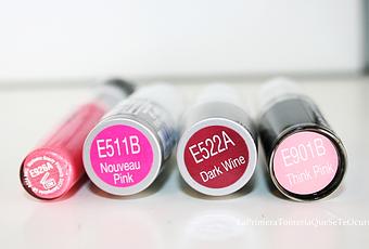 Barra de labios Silk finishEstos son mucho más cremosos, fundentes e hidratantes (pintalabios plateados). Por contrapartida, su duración es menor, pero no es que sea mala en exceso. Los colores son potentes, muy pigmentados y vivos. En general me parecen tonos especiales, muy particulares, y reconozcámoslo, muy bien de precio. El Nouveau Pink es un tono candy yum yum cabreado precioso, y el Dark Wine, un rojo terroso, no tan especial como otros.