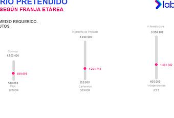 Las búsquedas de postulantes de entre 30 y 45 años para el puesto de Ingeniería de Producto son las que reciben el requerimiento salarial más elevado, con $3.000.000, mientras que Camareros es el más bajo con $550.000.