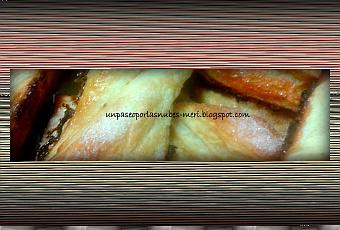 Bueno yo le he añadido azúcar por encima por que me encantan los lacitos con azúcar... jejeje El paso a paso es igual que la otra receta, cambiando el azúcar que ponemos en la plancha de hojaldre por leche condensada y un poquito de miel: