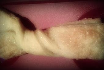 Sólo nos queda enrollar las tiras dando dos vueltas para que quede el azúcar de las extremidades hacia arriba. Horno 180º unos 10-15 minutos y a esperar si podéis a que se enfríen!!!!