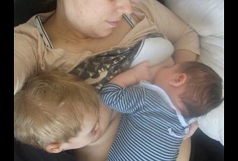 Yo pensaba que sería imposible, pero una teta se la dedicaba entera al bebé y la otra la compartían los hermanos. Samu ya sólo tomaba una vez para dormir o si se despertaba por la noche y Mateo, unas 3 o 4 veces al día, coincidiendo con episodios de sueño, celos, enfado o mamitis.