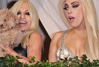 Lady Gaga está en Milán para ofrecer un concierto de su gira "Born This Way" y allí aprovechó para visitar a su amiga Donatella Versace en el Palazzo Versace. Con ellas el perrito de la cantante, Fozzy.