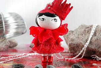 Mageritdoll Colección viste un modelo extraño y gótico elaborado en charol y puntilla pintada en rojo con pequeñas pinceladas negras.