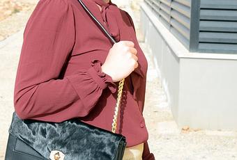 Sin más, un look elegante con falda estampada, una blusa burdeos con lazada en el cuello y mis nuevos zapatos y bolso de Diez Euros. El bolso es una autentica monada, es un básico. Un bolso negro con la solapa de pelo.