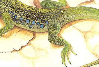 It is without place to doubt the most beautiful of the from Huelva saurios. Powerful jaws, green - yellowish body adorned by big blue "ocelos".