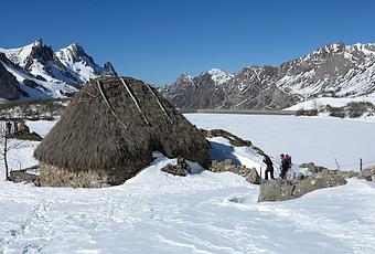 Desde la braña miramos para el lago donde observamos emergiendo del hielo la isla de L' Entreiru, que surgió del agua cuando las obras de contención del lago inundaron el terreno circundante. Esta voluminosa masa de agua con 24 Ha lo convierte en el mayor lago de Asturias.