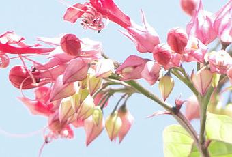 Las lágrimas de Cristo (Clerodendrum), vid originaria de África occidental, las especies leñosas semi, muy ramificado, tiene hojas ovaladas, fuertemente marcadas por vetas de color verde oscuro y brillante.