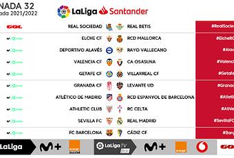 LaLiga de Fútbol Profesional ha publicado este viernes los horarios correspondientes a los partidos de las jornadas 32 y 33 del Campeonato Nacional. En la jornada 32 el Sevilla recibirá en el Ramón Sánchez-Pizjuán, en un partido que se celebrará el domingo 17 de abril a las 21:00 y será emitido por Movistar LaLiga.
