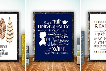 Estos días me ha dado por hacer cambios de decoración en mi habitación. Renovar o morir, así que me ha parecido oportuno compartir con vosotros ideas para vestir la pared con láminas inspiradas en obras célebres de la literatura. A continuación recojo algunas de las propuestas de diversos diseñadores gráficos con tienda en Etsy, tan solo una pequeña muestra de lo que podéis encontrar. Aunque si sois atrevidos y os gusta llevarlo al terreno personal, podéis diseñarlas vosotros mismos a vuestro gusto.