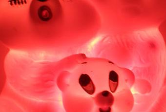 Es una lampara de goma de mesilla de noche para bebes, da una bonita luz tenue y cálida, esta fabricada en España,tiene unos 40 años.
