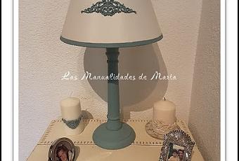 Compré una pantalla normalita en blanco, pero me parecía que quedaba un poco sosa, opte por pintar los bordes de la pantalla con la misma pintura del pie y al final hice un molde de pasta, pinté del mismo color y lo pegué en la pantalla.