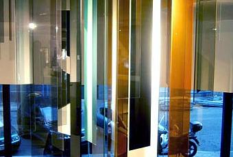 En su conjunto forman una estructura decorativa donde las diferentes tonalidades y opacidad de cada una de las piezas, juegan con el reflejo y la distribución de la luz (gracias también a los soportes y fijaciones independientes, que les confiere un cierto punto de libertad de movimiento). De esta manera obtenemos desde diferentes puntos de vista, nuevas y sorprendentes composiciones debidas a la superposición de las láminas.