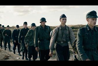 Entre muerte y muerte se nos dan a conocer los sueños, esperanzas y deseos de todos estos jóvenes cadetes que inocentemente creen en la salvación y en el escape de ese mini campo de concentración con barracón y literas incluido y escasez auténtica de comida. Son los únicos momentos de calma entre tanta agitación porque Land of mine (Bajo la arena) es y se convierte en un intenso drama bélico y en una continua sensación de tensión que no mengua y se mantiene constante a veces incomodando al espectador que no sabe ni cuando ni donde saltará la liebre por los aires, volada en mil pedazos. Por una vez y no creo que sea precedente de muchas más los soldados nazis alemanes no son vistos como monstruos sin sentimientos ni animales que son y serán odiados por siempre sino todo lo contrario, son hombres vencidos que deben aguantar estoicamente el castigo que se les ha impuesto y la pena mortal para muchos de ellos. Víctimas y no verdugos recibirán todo tipo de escarnios y torturas tanto verbales como físicas antes de encontrar una paz en el cielo o en la tierra.