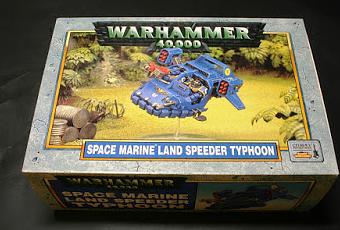 Este fue el primer Land Speeder Tifón que han tenido los Marines Espaciales. Fue diseñado por Jes Goodwin y Norman Swales y se anunció en el número 54 de la edición española de la revista White Dwarf de octubre de 1999.