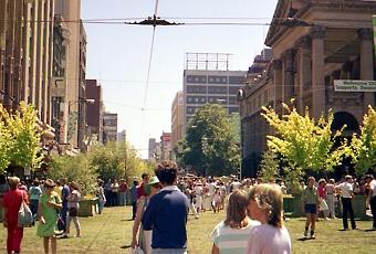 Swanston Street, Melbourne turned into a park for 150th anniversary in 1985