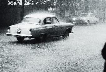 No deja de sorprender el hecho de que la lluvia suscite una épica narrativa que no soporta el día luminoso. Hay una tendencia tácita a privilegiar los argumentos del gris. Incluso estoy por aceptar que el noir se hizo arte en el blanco y negro porque el color borra toda posibilidad de tragedia. Esta misma fotografía induce un rico tapiz de tramas que no acudirían si la bañara el sol y al coche no lo abatiera la pertinaz lluvia. La sombra a la derecha, el personaje del que nada sabemos, es el que espolea la épica. De él extraemos toda la fabulosa inventiva que hace de un momento mecánico e intrascendente uno absolutamente relevante, digno de encender la más tibia de las atenciones. Son estos asuntos los que nos consuelan de Wert y de Menkel. En la literatura, en ese palimpsesto de lo real, reside la belleza de las cosas. No sé por qué traigo ahora al tibio ministro de Educación (es mentira eso de la educación en Wert) y a la cristiana Menkel. Uno se refugia en la ficción cuando la realidad lo aturde. Uno se refugia en la ficción cuando la realidad lo aturde, repito. Me refugio, me proclamo patriota de mis vicios, me retiro de todas las demás banderas, reniego de todos los dioses, me planto en la plasticidad de una fotografía en blanco y negro (ay, otra vez carezco de información sobre la autoría de esta maravilla) y me pido un folio en blanco (me vale un procesador de textos) para contarme esta noche las razones de esa sombra de la que nada sabemos. De lo que no sabemos levantamos un mundo. Soy un pequeño dios rudimentario y caprichoso que desoye la admonición del augur (de Wert, qué perra la mía) y se engolosina con lo que hubiese sacado Fritz Lang de este fotograma. Esta noche cambio a Lang por Wert con los ojitos cerrados. Ya me callo.