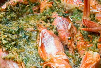 Unos langostinos en salsa verde de avellanas al cava increíblemente sabrosos. Es un plato sano, original y delicioso.