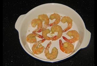 Elaboración: Pelamos los langostinos, les dejamos la cola para que sean más fáciles de comer, y sazonamos con un poco de sal. Los pasamos por huevo batido y pan rallado y lo vamos colocando en una bandeja apta para horno.