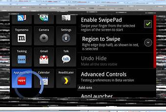 SwipePad para Android es una forma muy simple de tener a tus aplicaciones más usadas siempre listas en todo momento. Con SwipePad puedes definir la región de tu pantalla que deseas usar para activar el panel de atajos. Por defecto la región está definida en la esquina superior derecha de la pantalla. Simplemente desliza tu dedo por el lado derecho de la pantalla y luego al medio y mágicamente aparecerán 12 casilleros que podrás asignar manteniendo presionado una de ellas por más de 2 segundos.