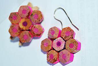 Pendientes hechos con lapiceros de colores.