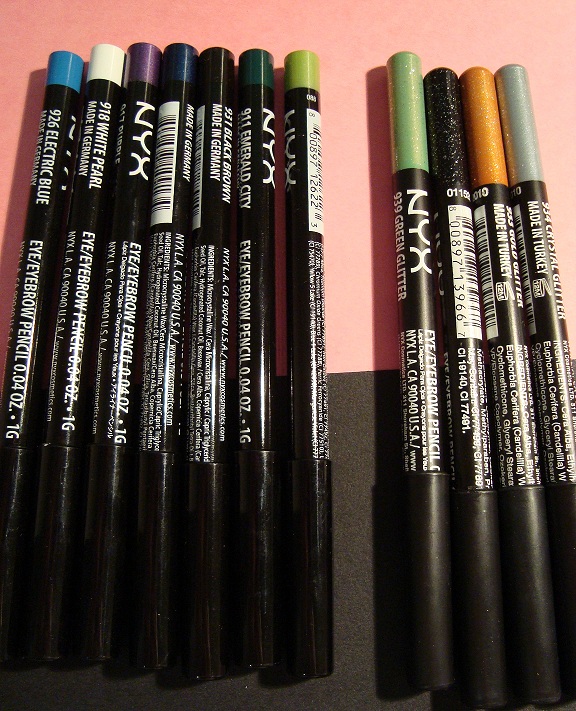 Este es otro regalo de Reyes que aún no había colgado y para variar un poco, alterno los looks y los analisis de maquillaje que voy probando. Estos son los lápices de ojos de la super conocida marca de Nyx. Una vez que los he probado, tengo que deciros que pigmentan bastante y son colores bastante utilizables. Además no sólo sirve para los ojos, si no que además sirve para las cejas!. Estos que os enseño son mates, menos 4 que son de purpurina, los cuales me han dejado un buen sabor de boca.
