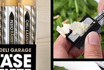 ¡Lápices comestibles! La agencia creativa alemana Kolle Rebbe ha desarrollado un envase inusual para el queso parmesano de la compañía The Deli Garage: un pequeño y práctico lápiz creado con queso y un sacapuntas que le acompaña. Un envase de lo más creativo, ¿verdad?