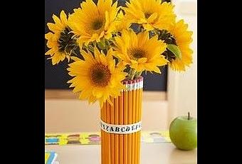 En esta decoración se han usado unos lápices amarillos, pero se podían haber usado cualquier otro color de lapicero, y conseguir una decoración, acorde con el ambiente de donde vayamos a situar nuestro florero.