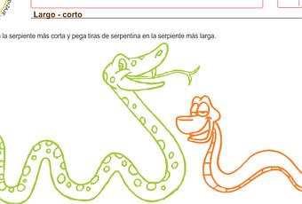 Actividad a realizar: Colorea la serpiente más corta y pega tiras de pegatina en la serpiente más larga